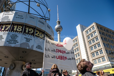 Menschen mit und ohne Behinderungen trafen sich am 21. April 2016 in verschiedenen Städten um lautstark mit Weckern und Megafonen auf mehr Gleichberechtigung hinzuweisen und für ein Teilhabegesetz zu demonstrieren. Unter dem Motto "Die Zeit ist reif" fordern die Aktivist*innen die volle Umsetzung der Behindertenrechtskonvention der Vereinten Nationen im Rahmen des versprochenen Bundesteilhabegesetzes! Gewährung von Unterstützung bei Teilhabe, Assistenz und Pflege unabhängig von Einkommen und Vermögen des Menschen mit Behinderung und deren Partner*innen. Individuelle Unterstützungen statt aussondernden Einrichtungen.